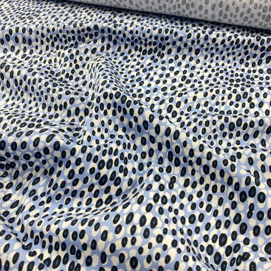 Sarga tipo satín azul claro con detalles blancos y negros